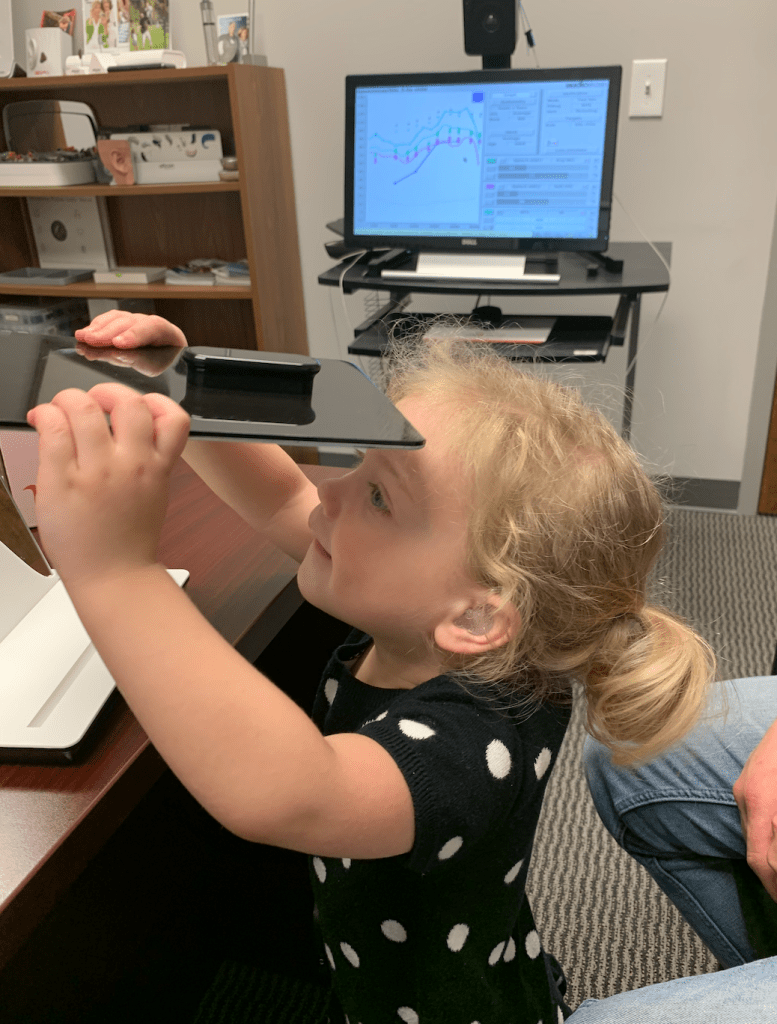 Shortly after Sutton’s diagnosis we went to her audiologist to get earmolds made for her hearing aids. We got to pick out the colors, the style, and we could even pick whether it was sparkly or not. In these moments, you try to make the best of a hard situation. I imagine it’s probably like picking out a wheel chair, or prosthetic, or another type of device created to give access to a person with a disability. I didn’t really enjoy picking out Sutton’s hearing aid options because it made it all the more real to us she had hearing loss.
